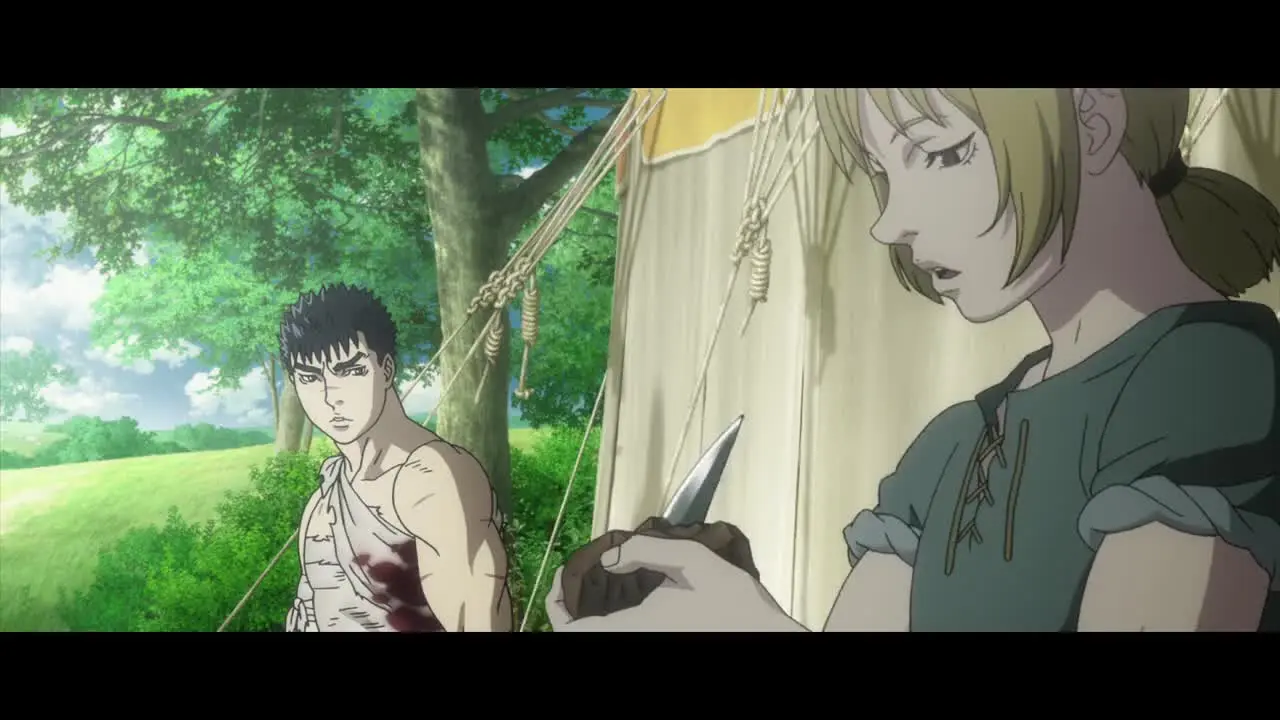 В жестоком мире Средневековья, где свирепствует война, странствует наёмник по имени Гатс, известный как Чёрный Воин. Его жизнь кардинально меняется после встречи с Гриффитом, харизматичным лидером отряда «Банда Ястреба». Непобедимый в бою Гатс, впервые встретивший равного себе, вынужден присоединиться к отряду после поражения в поединке. Под гениальным руководством Гриффита наёмники достигают невиданных успехов, а их предводитель неуклонно движется к своей заветной цели — собственному королевству. Гатс же обретает не только место в отряде, но и единственных в жизни друзей, включая храбрую воительницу Каску.
