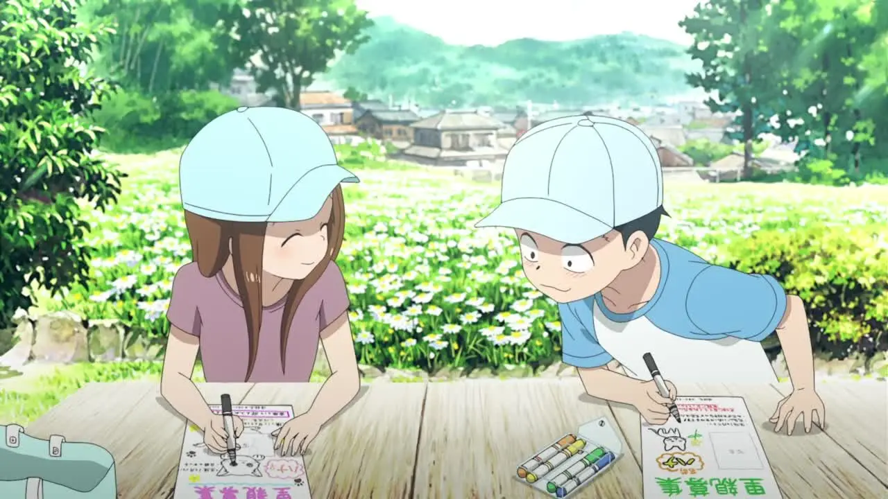 Но за этой бесконечной чередой розыгрышей и соревнований начинает проступать нечто большее. Постепенно Нисиката замечает, что за ее вечной улыбкой скрываются искренние чувства. Их общение, наполненное смехом и легким соперничеством, превращается в трогательную историю о первом робком чувстве. Фильм рассказывает не просто о школьных шалостях, а о том, как два юных сердца медленно, но верно находят дорогу друг к другу, скрывая свои настоящие эмоции под маской беззаботной игры.